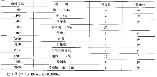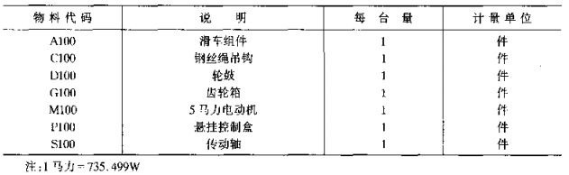 1. 零件清单不是BOM。表1所列的某企业物料代买是WA01的绞车零件清单。这不是BOM,因为它并未表明构成产品WA01的零件之间的层次关系。