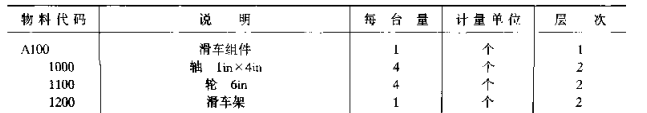 4. 物料清单中的数据项。用来描述产品的结构,凡是在产品的生产过程中需要用到、需要进行计划和调度的物料项目,均应作为产品结构不同层次上的子项而置于物料清单之中,而且要通过一系列数据项对这些子项进行描述。